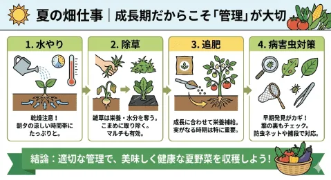 夏の畑仕事で意識したいポイントは、とてもシンプルです。