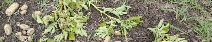 - 葉が7〜8割枯れてきたら収穫のサイン(試し掘りで確認OK)